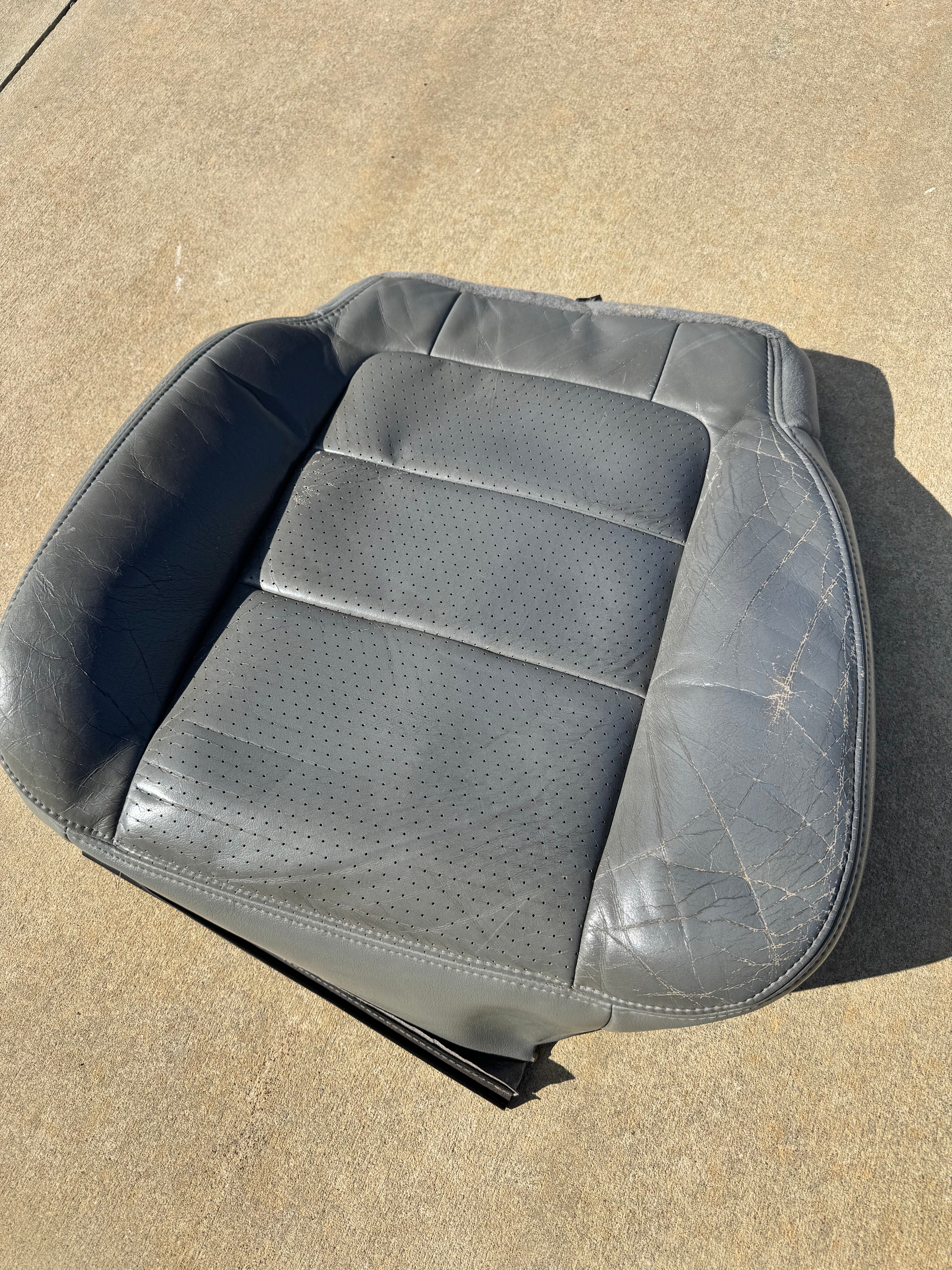 Used Leather Seat Bottom. Fits 2002-2004 Super Duty Lariat. Gray Color. Some cracking but no holes. No Returns